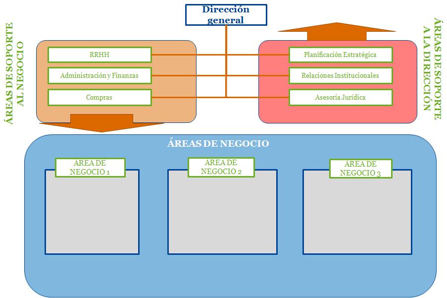 - Las áreas de soporte cuyo principal cliente es el negocio, que se encargan que las diferentes áreas de negocio, prestándoles servicios para conseguir alcanzar sus objetivos, entre las áreas o responsabilidades que se encuentran dentro de este Staff al negocio, se encuentran las áreas de RRHH, Marketing, Comunicación Interna, Administración y Finanzas).
